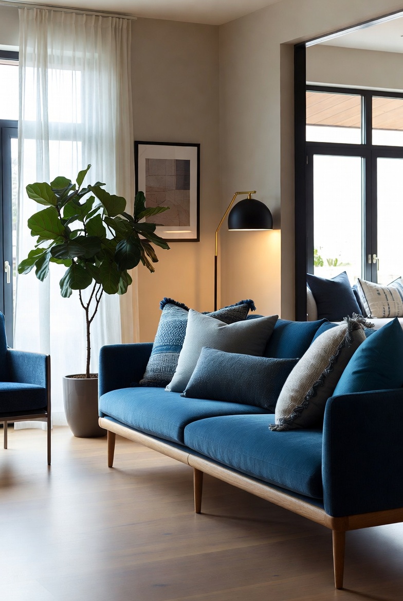 15 Wohnideen für ein modernes Wohnzimmer mit blauem Sofaset